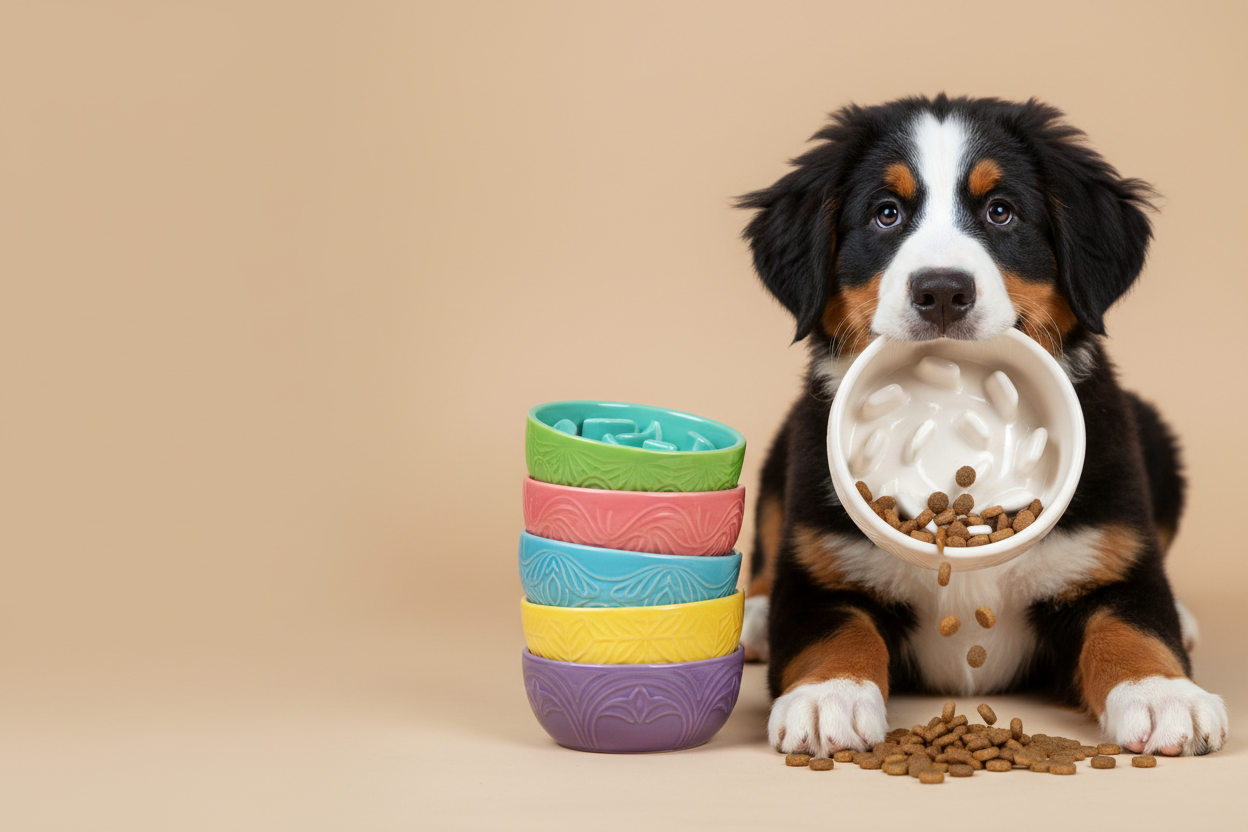 Slowfeeder foderskål til både fast og cremede kost. Sænker hundens spisetempo. Kan fryses.